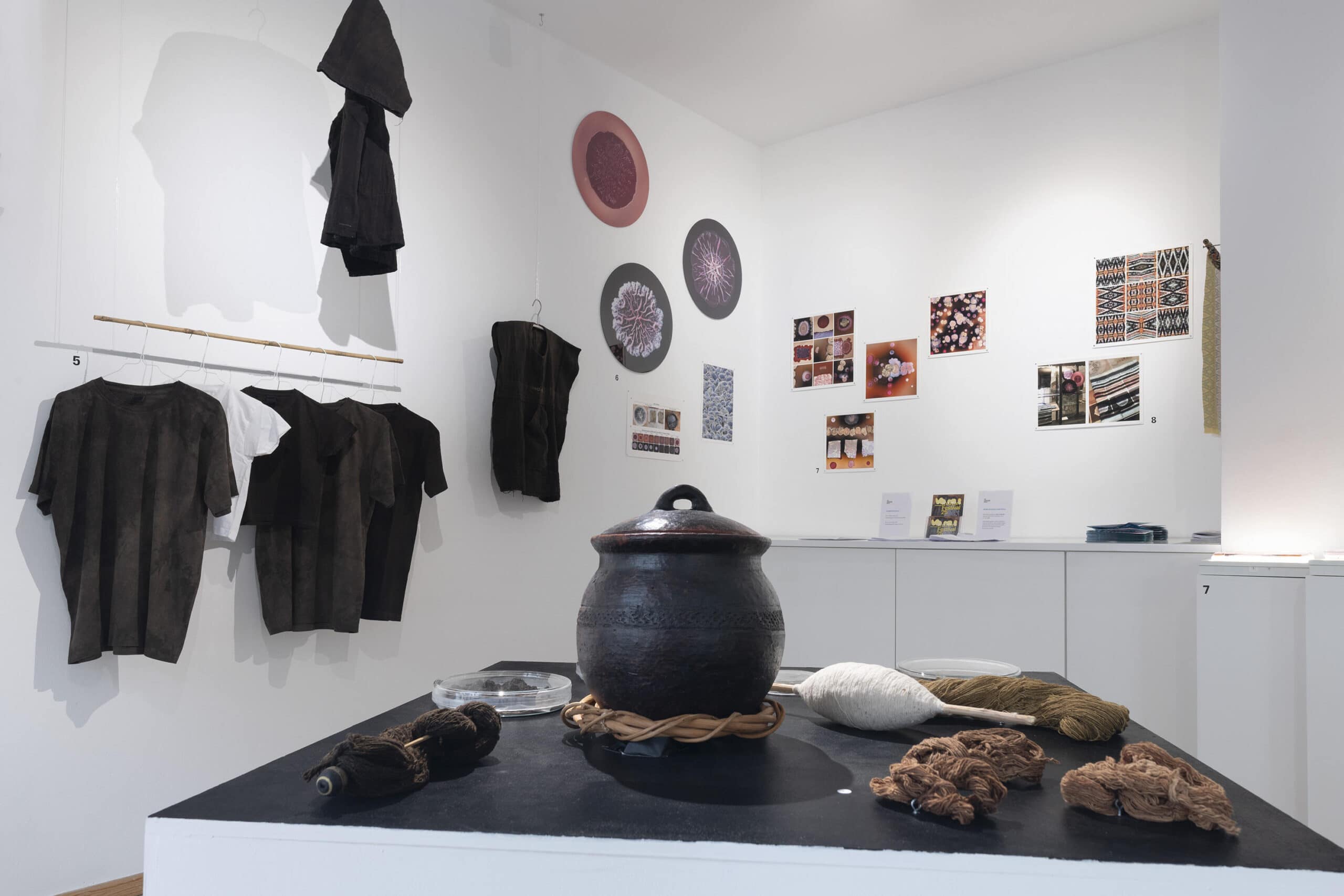 Durch die Kombination dieser Ansätze, Methoden und Kontexte unterstreicht Fermenting Textiles das Wirken und die Empfindungsfähigkeit der Materie im Fermentationsprozess und ihre vielseitige Materialität. Aus der Perspektive posthumanistischer Philosophie betrachtet, tritt die Materie aktiv auf, was die Philosophin Karen Barad als „eine materialistische, naturalistische und posthumanistische Ausarbeitung“ beschreibt, „die der Materie den ihr gebührenden Platz als aktive Teilnehmerin am Werden der Welt, an ihrer fortwährenden ‚Intra-Aktivität‘ einräumt“ (Barad 2003). Die einzigartige multinationale, multi- und transdisziplinäre Zusammenarbeit, aus der die Gruppenausstellung Fermenting Textiles besteht, spiegelt die artenübergreifende Kollaboration wider, die ein wesentlicher Bestandteil des Färbeprozesses von Schlamm ist.