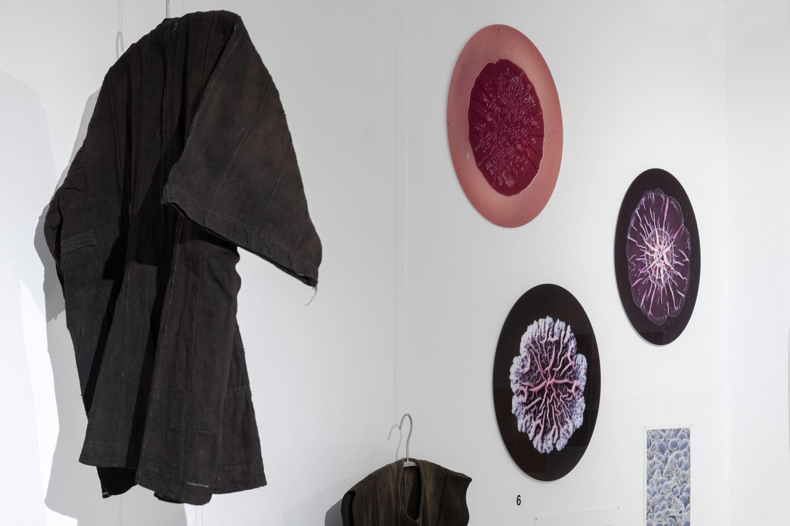 Fermenting Textiles ist ein inter- und transdisziplinäres Forschungs- und Ausstellungsprojekt, das die aktive Materie in den Mittelpunkt stellt: Es verbindet Anthropologie, Mikrobiologie und Kunst mit Beiträgen von Kunsthandwerker:innen, Anthropolog:innen, Naturwissenschaftler:innen und Künstler:innen sowie mehr-als-menschlichen Akteur:innen. Fermenting Textiles erforscht die Fermentierung von Textilien in Schlamm und Pflanzenmaterial, um komplexe Färbungen für verschiedene Verwendungszwecke herzustellen – von traditionellen Jagdhemden in Burkina Faso bis zum Färben von Kimono-Seide in Japan. Es handelt sich um handwerkliche Verfahren mit faszinierenden traditionellen Verwendungen und Bedeutungen. In beiden Fällen werden natürliche chemische und biologische Prozesse genutzt, um einzigartige ästhetische und medizinische Ergebnisse zu erzielen.
