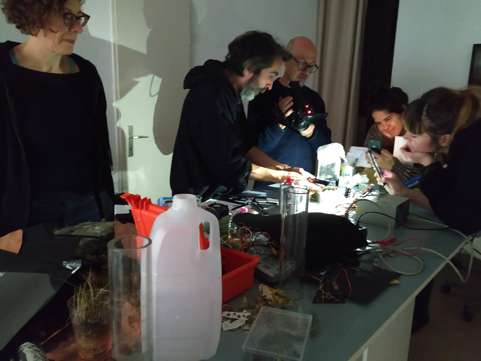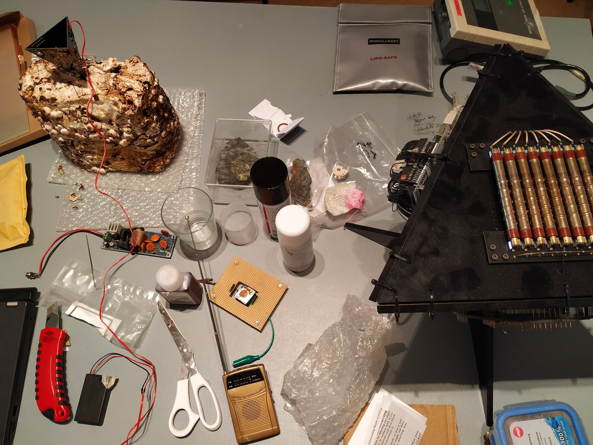 Im hinteren Raum zeigt Martin Howse Objekte, Maschinen und Visualisierungen seines Workshops Local Area Network (LAN), den er als forensischen Ausstellungsteil versteht. Es ist eine transdisziplinäre, spekulative Untersuchung lokaler Felder und Partikel sowie ein energetischer Austausch, der ein Hacken lokaler Netzwerke in geologische, ökologische und technologische „Umwelten“ vorschlägt. Howses Arbeit beinhaltet aktive Formen der Zusammenarbeit, um die Treffpunkte von Code, Geologie und der menschlichen Psyche zu erkunden (Psychogeophysik).
