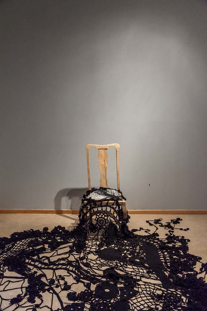„Normal Flora“ ist eine Untersuchung allgegenwärtiger Bakterien, Schimmel und Pilze, die einen wesentlichen Teil unseres komplexen Ökosystems um uns herum ausmachen – unserer Körper, unserer Heimstätten sowie unseres Planeten. Bed and Chair Flora umfasst einen bearbeiteten Stuhl, in welchen Abbildungen von Bakterien geschnitzt wurden, die sich ursprünglich bei ihm angesiedelt haben. Die gemeinschaftlich entstandene Häkelarbeit geht auf elektronenmikroskopische Bilder jener Bakterien zurück, die im Bett der Künstlerin gefunden wurden.