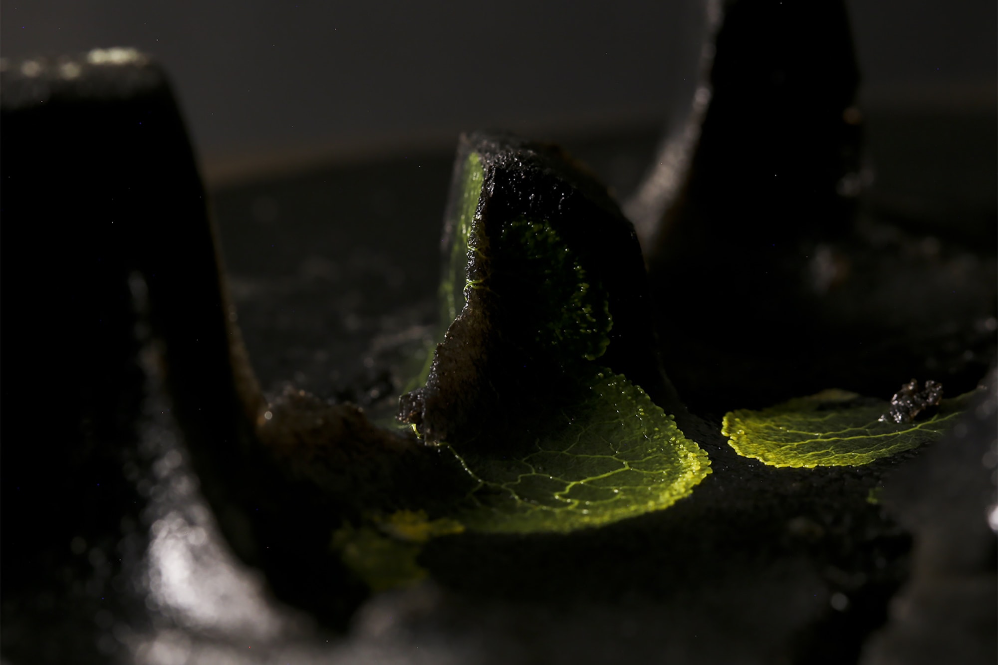 Der Film Resilient Topographies # 1: Die Halbinsel von Paljassaare , produziert für die Architektur-Biennale in Tallinn, nutzt die Modellbildungs-Konzepte von ecoLogicStudio als Topographie, auf der Physarum polycephalum wandert. Wir können eine protoplasmische Strömung des Schleimpilzes beobachten, während der Organismus die dynamischsten und effizientesten Routen berechnet. In Resilient Topographies # 2: Vernetzte Navigationen nähern sich zwei Klonzellen von Physarum polycephalum einander an und verschmelzen.