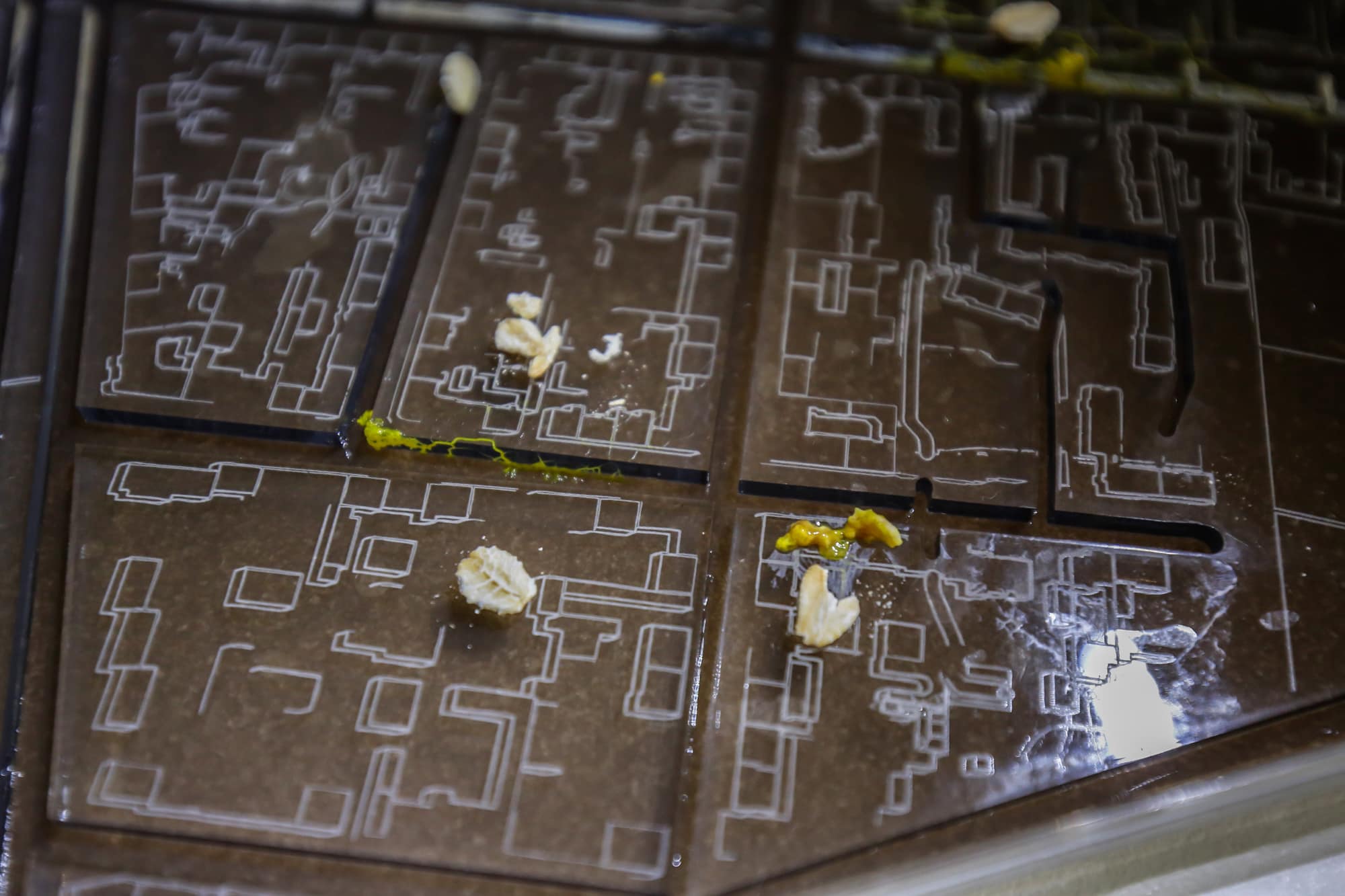 Die Installation BioCartographies (Wedding, Berlin) ermöglicht es dem Physarum polycephalum, ein Modell der Umgebung rund um ALB zu erforschen, in einer speziell konstruierten Petrischale zu navigieren und zu erkunden.