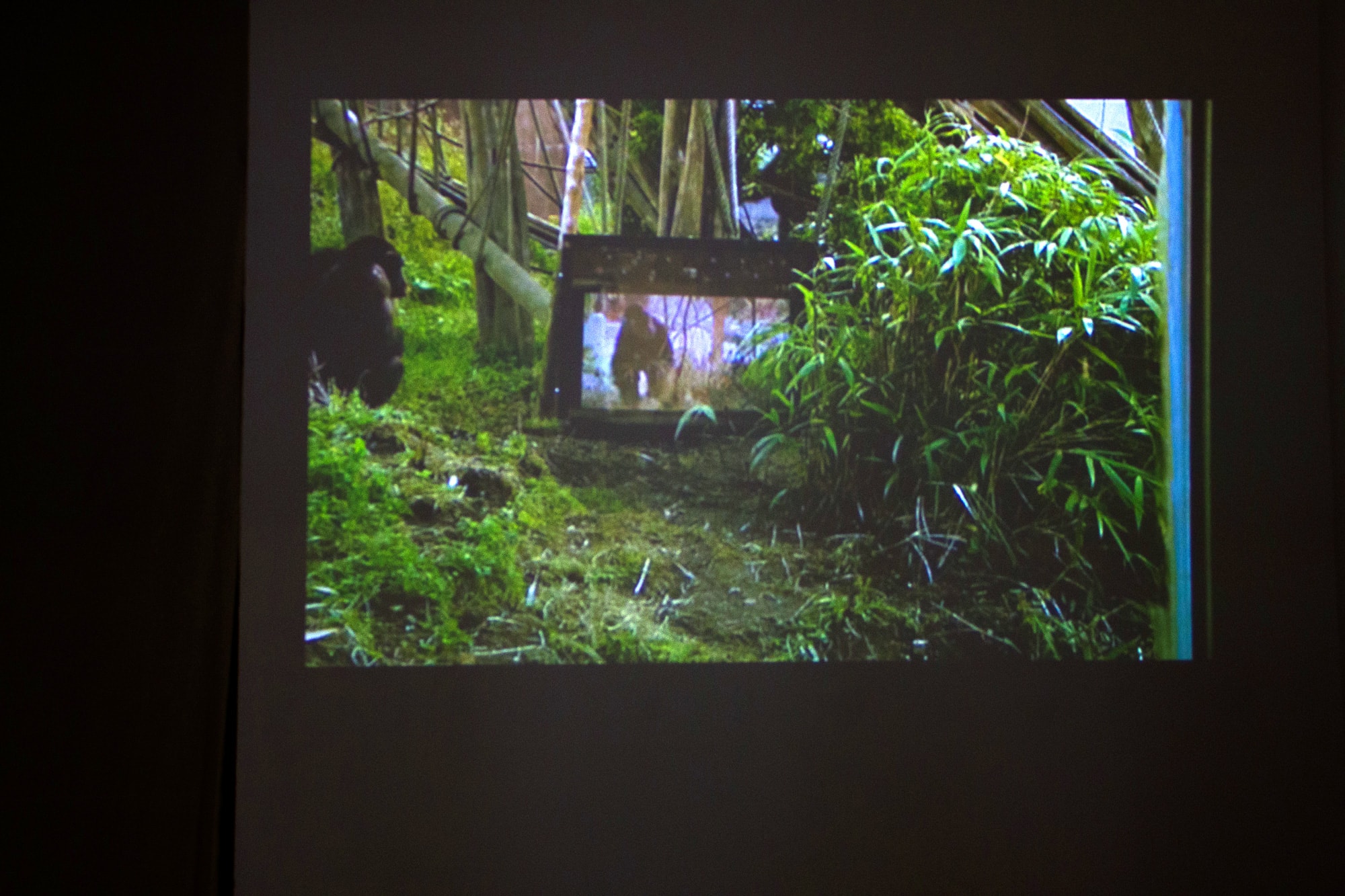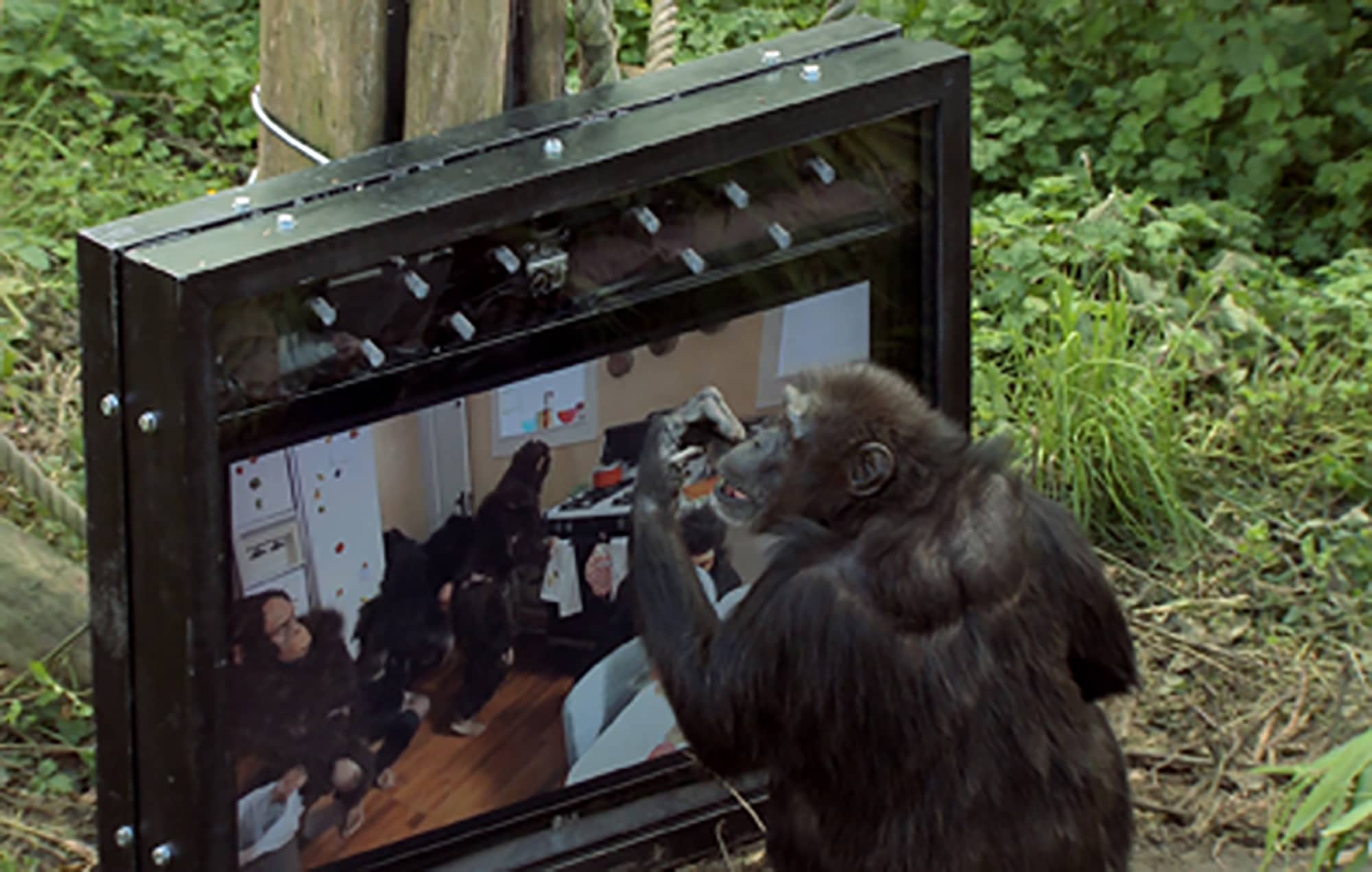 In Apes as Family (2012)sehen wir ein Drama, das eine Geschichte über die sozialen Bräuche von Schimpansen sowie ihre Domestizierung erzählt. Einerseits spricht uns, als menschliche Betrachter, die teils dramatische Handlung emotional an, andererseits sehen wir wiederum die Reaktionen des Schimpansen-Publikums, die denselben Film auf einem großen TV-Monitor sehen (hier erstmals im Edinburgh-Zoo). So erweist sich der Film als gelungenes Beispiel für das ‚Primate Cinema‘, als Film für nichtmenschliche Primaten, aber auch für die komplexen Zusammenhänge des artenübergreifend Verständnisses.