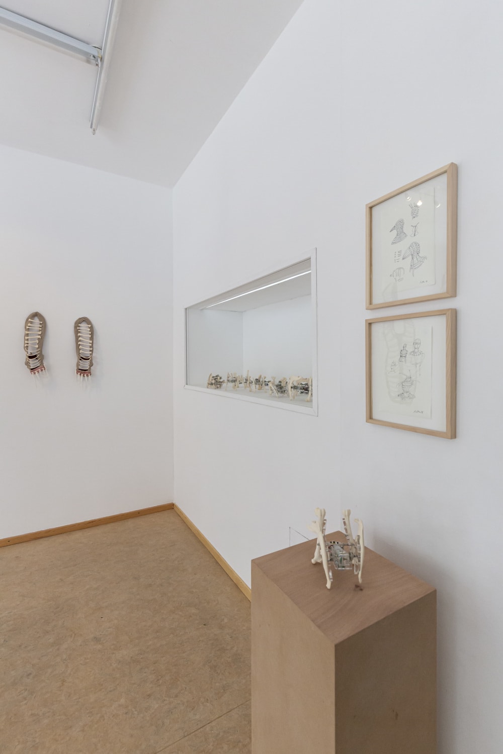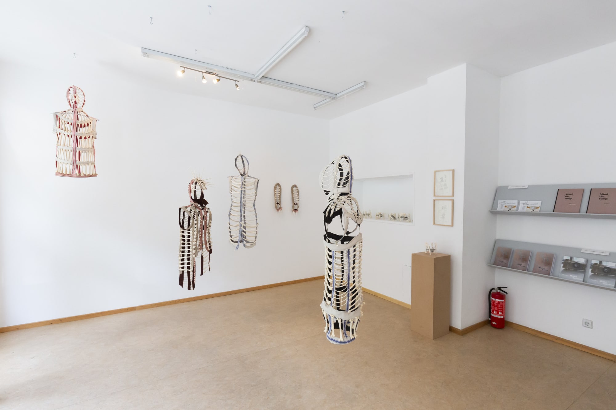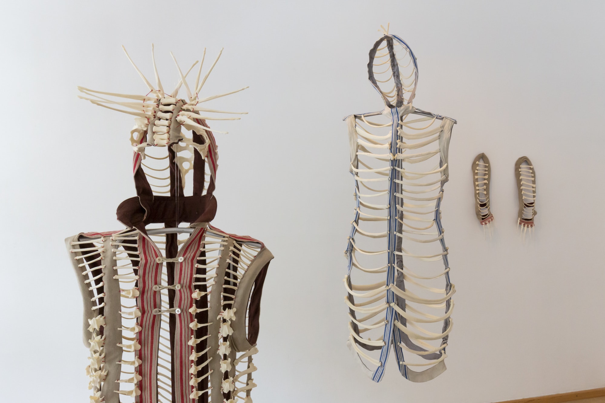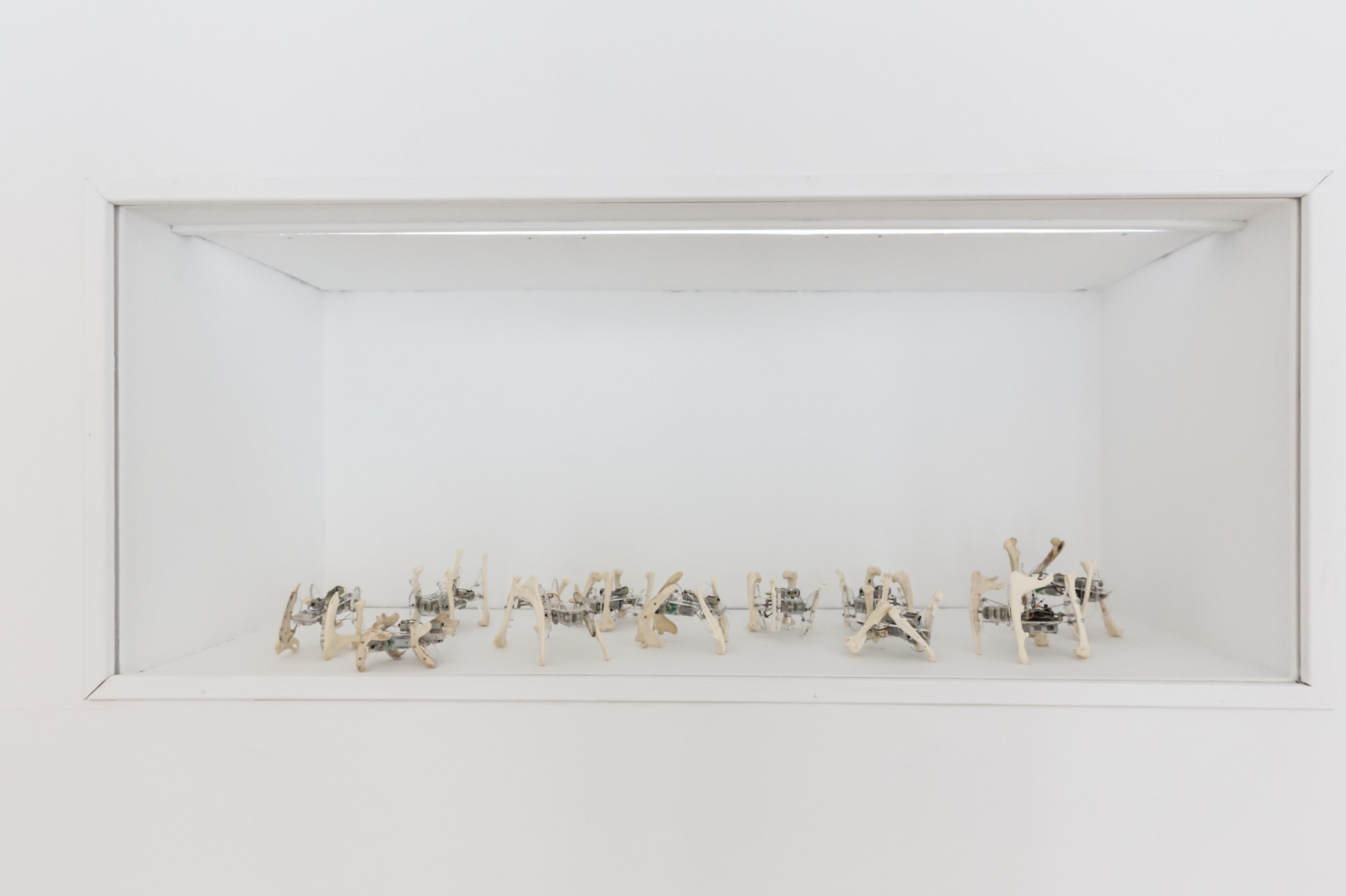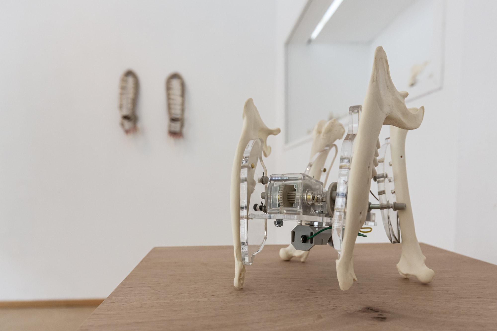 Käthe Wenzel hat in ihrem Projekt Bone Bots Schnittstellen zwischen dem Biologischen und Maschinellen hergestellt: Die hybriden elektronischen Tiere, Roboter aus Tierknochen, verwischen traditionelle Kategorien von „Technologie“ und „Natur“, da sie als Experimente auf der Grundlage von synthetischer Biologie basieren und halb-lebende Maschinen darstellen. Wenzels Bone Costumes thematisieren den Massenkonsum von Lebewesen und die tägliche Tötung tierischer Körper und die normierten Formen, in die wir versuchen, unsere eigenen Körper hinein zu pressen. Die Arbeiten entstanden aus der Recherche historischer Korsett-Techniken; in Verbindung mit modernen Fashion-Technologien entwickeln sie sich zu Exo-Skeletten, halb organischen und halb mechanischen apokalyptischen Outfits.