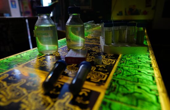 Der Workshop verknüpft Praktiken der DIY-Biologie mit Kunst und Design. Durch ein partizipatorisches Format wird das Publikum mit unterschiedlichem Hintergrund in eine immersive Erfahrung mit der Ökologie der Algen, einen DIY-Fotobioreaktor-Prototypen und eine Diskussion über spekulative Praktiken einbezogen, die darauf abzielen, das Bewusstsein für die täglichen Gewohnheiten zu schärfen.