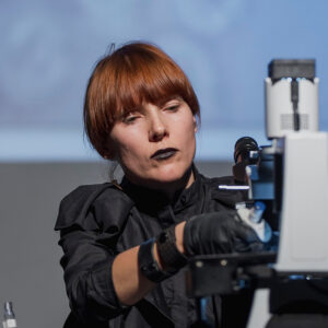 Karolina Żyniewicz ist eine in Berlin lebende Künstlerin (2009 Abschluss an der Akademie der Künste in Łódź, Fachbereich Bildende Kunst) und Forscherin, die im Rahmen des internationalen transdisziplinären Doktorandenprogramms Natur-Kultur an der Fakultät Artes Liberales der Universität Warschau promoviert hat. Sie bezeichnet sich selbst als Grenzgängerin, da ihre Arbeit „zwischen“ Kunst, Biotechnologie, Geisteswissenschaften und Anthropologie angesiedelt ist. Żyniewicz sieht ihre an Grenzbereichen angesiedelte Tätigkeit als situierte Wissensproduktion und eine Form der Autoethnographie. Ihre Projekte haben konzeptionellen und kritischen Charakter. Sie stellt ihre Beobachtungen als Künstlerin/Forscherin (liminales Wesen) in den Kontext der Science and Technology Studies (STS) und der feministischen Geisteswissenschaften. Żyniewicz arbeitete mit zwei der bekanntesten Kunstinstitutionen in Warschau zusammen, dem Museum für Moderne Kunst und der Nationalgalerie Zachęta, wo sie Bildungsprogramme mitgestaltet, darunter auch Veranstaltungen für sehbehinderte und gehörlose Menschen. Die erworbenen pädagogischen Fähigkeiten setzt sie in ihrer unabhängigen Praxis ein. Bei Art Laboratory Berlin assistiert sie derzeit für das größer angelegte Projekt MATTER OF FLUX (Gruppenausstellung, Netzwerk, Festival).