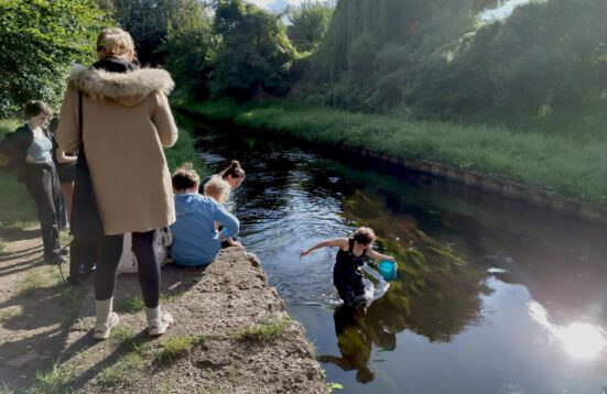 Gemeinsam mit der mikrobiellen Ökologin India Mansour und der Künstlerin Sybille Neumeyer gehen die Teilnehmenden den ständigen Veränderungen des Flusses, der Panke, auf die Spur, und setzen sich mit der Vergangenheit, Gegenwart und möglichen Zukunft des Flusses auseinander.