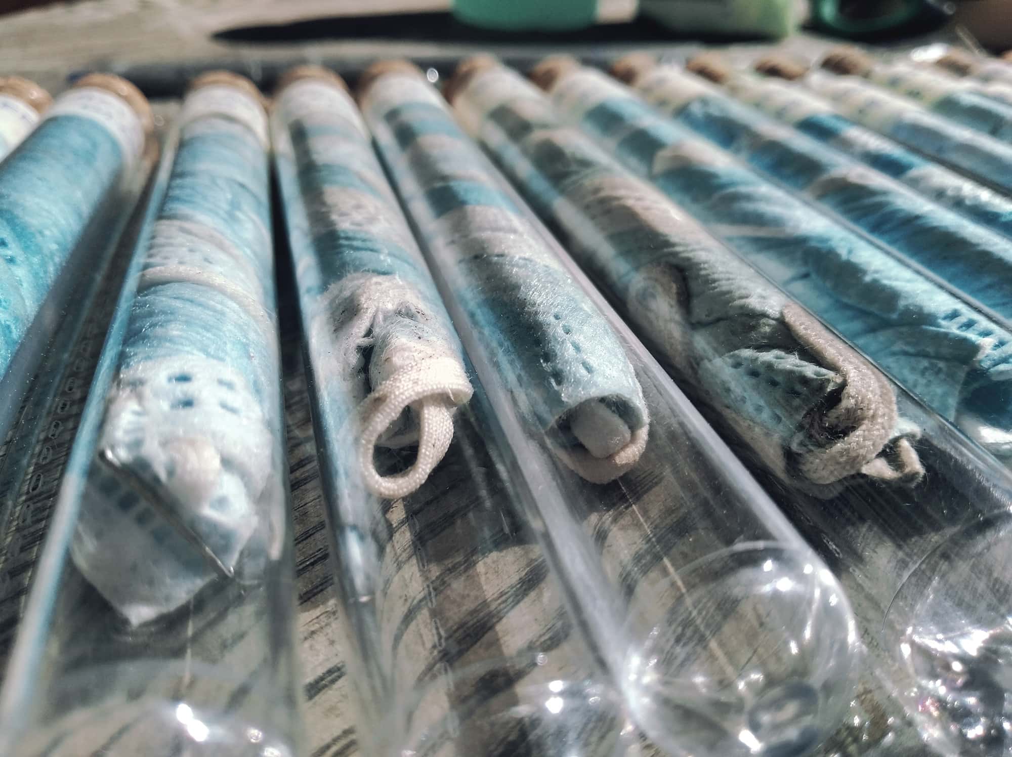 Die Laborphase des Projekts ist für die nächsten zwei bis drei Jahre geplant. Ich beabsichtige, die biologischen Überreste der gesammelten Masken zu untersuchen. Sie stammen aus dem Körper und aus der Umwelt, die die Probe kontaminiert hat. Ich interessiere mich weniger für menschliches genetisches Material, sondern mehr für nichtmenschliche Erreger, menschliche Lebensgefährt:innen.
