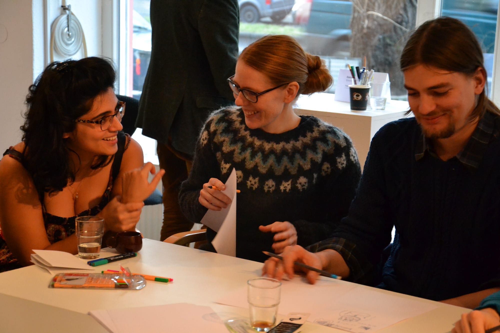 Participants of the workshop are divided in the pairs of one artist and one scientist. Each pair will receive a problem to think about, each using their own method. That is the easy part. Then they are asked to switch roles – artists are supposed to think about the problem as scientists and scientists as artists. They monitor each others progress continuously and help each other. Then the process is repeated. Over a few iterations, both should have a glimpse into the methods of both art and science.