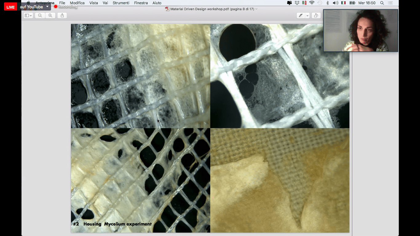 This Mind the Fungi workshop discusses the new material driven design movement and methodology, learning how to build a new material by studying and using a living organism like mycelium. Discovering the features, possibilities and limits of mycelium-based materials, the participants will work together growing material and developing new material, building sculptures, assembling DIY packaging and drawing and cutting patterns on a new material made of biofilm.