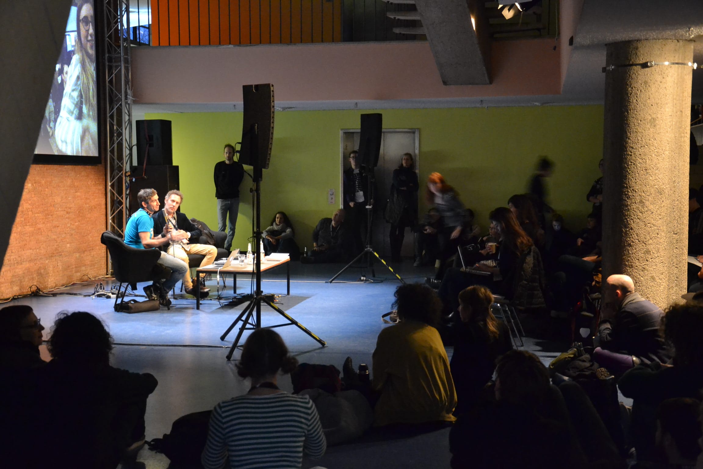 At transmediale/ conversation piece (House of World Cultures, John-Foster-Dulles Allee 10, 10557 Berlin) François-Joseph Lapointe with Christian de Lutz (Art Laboratory Berlin)