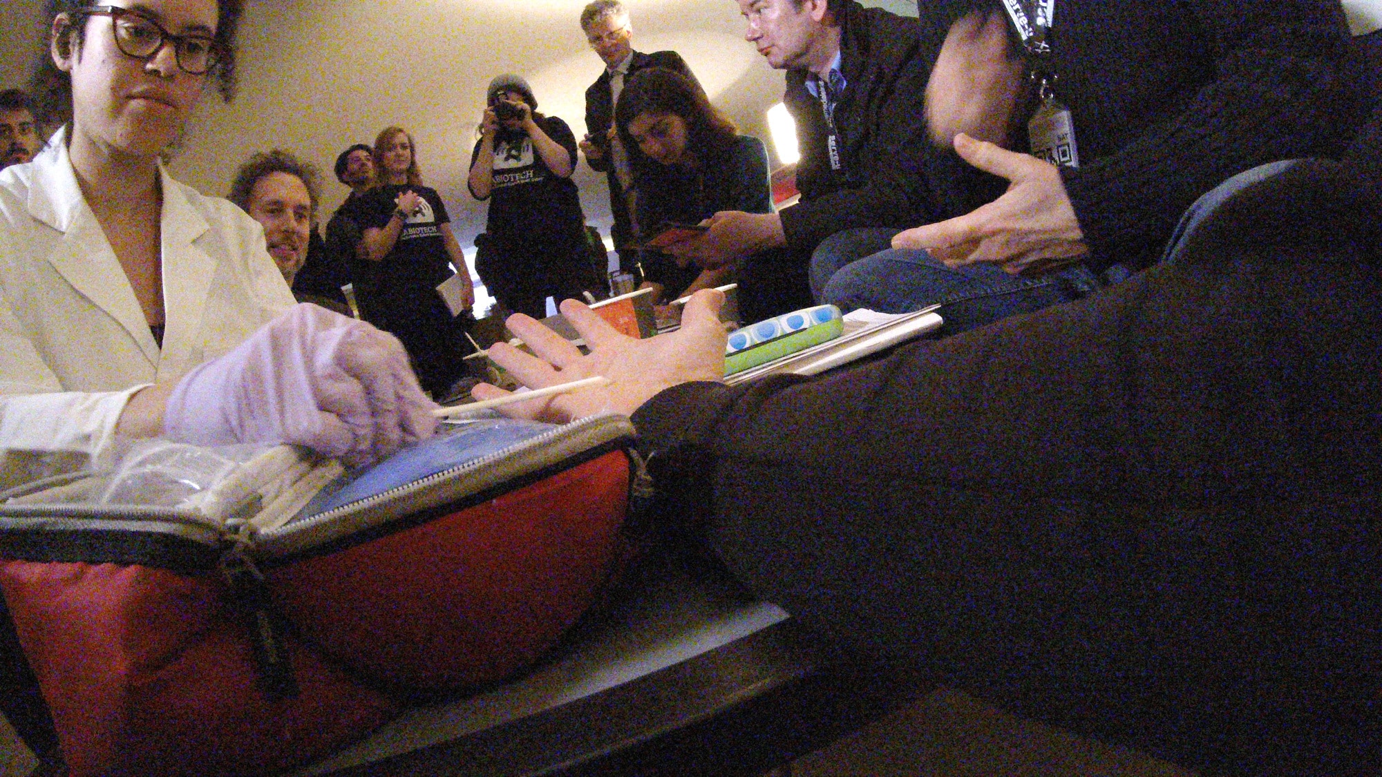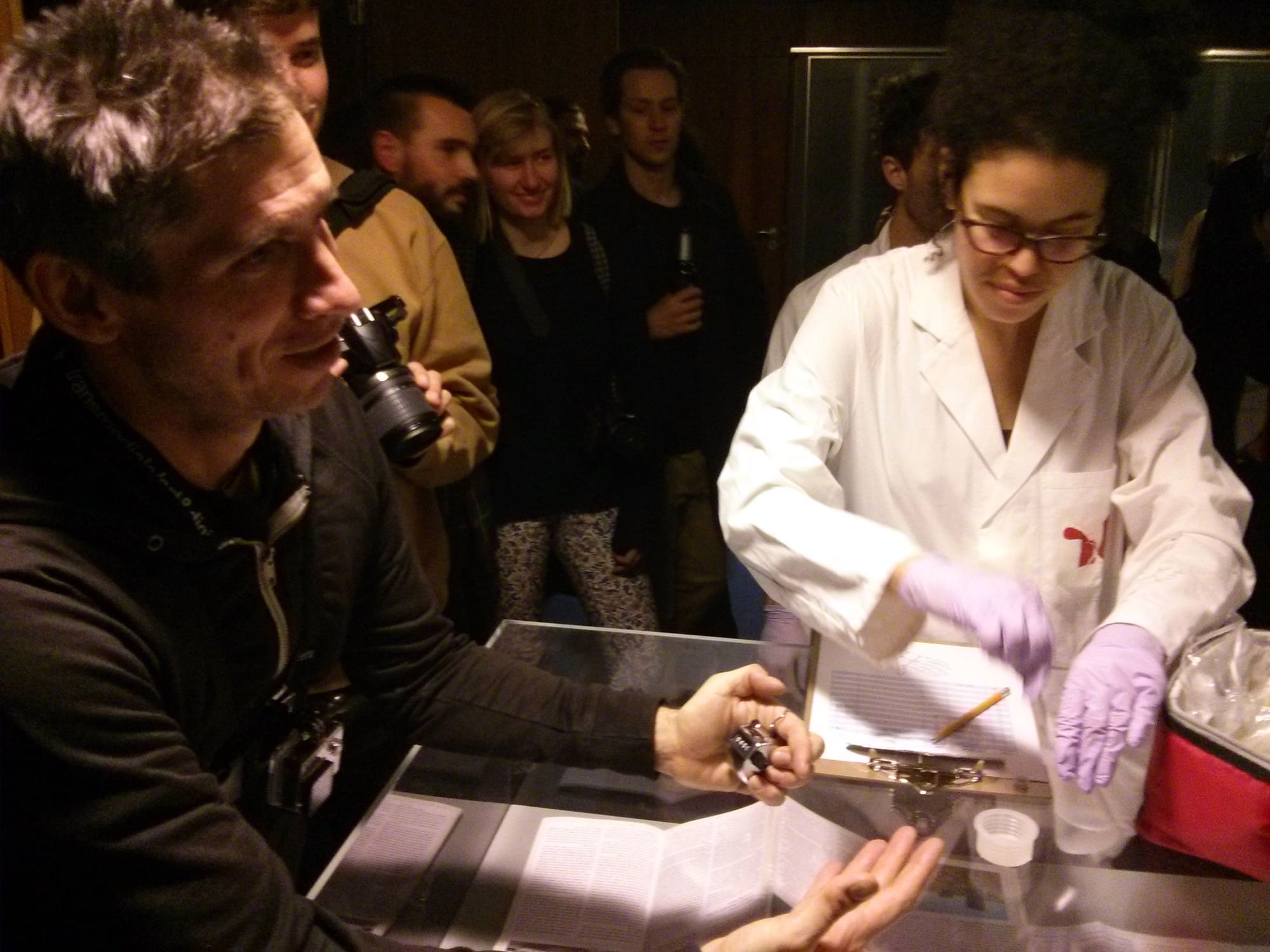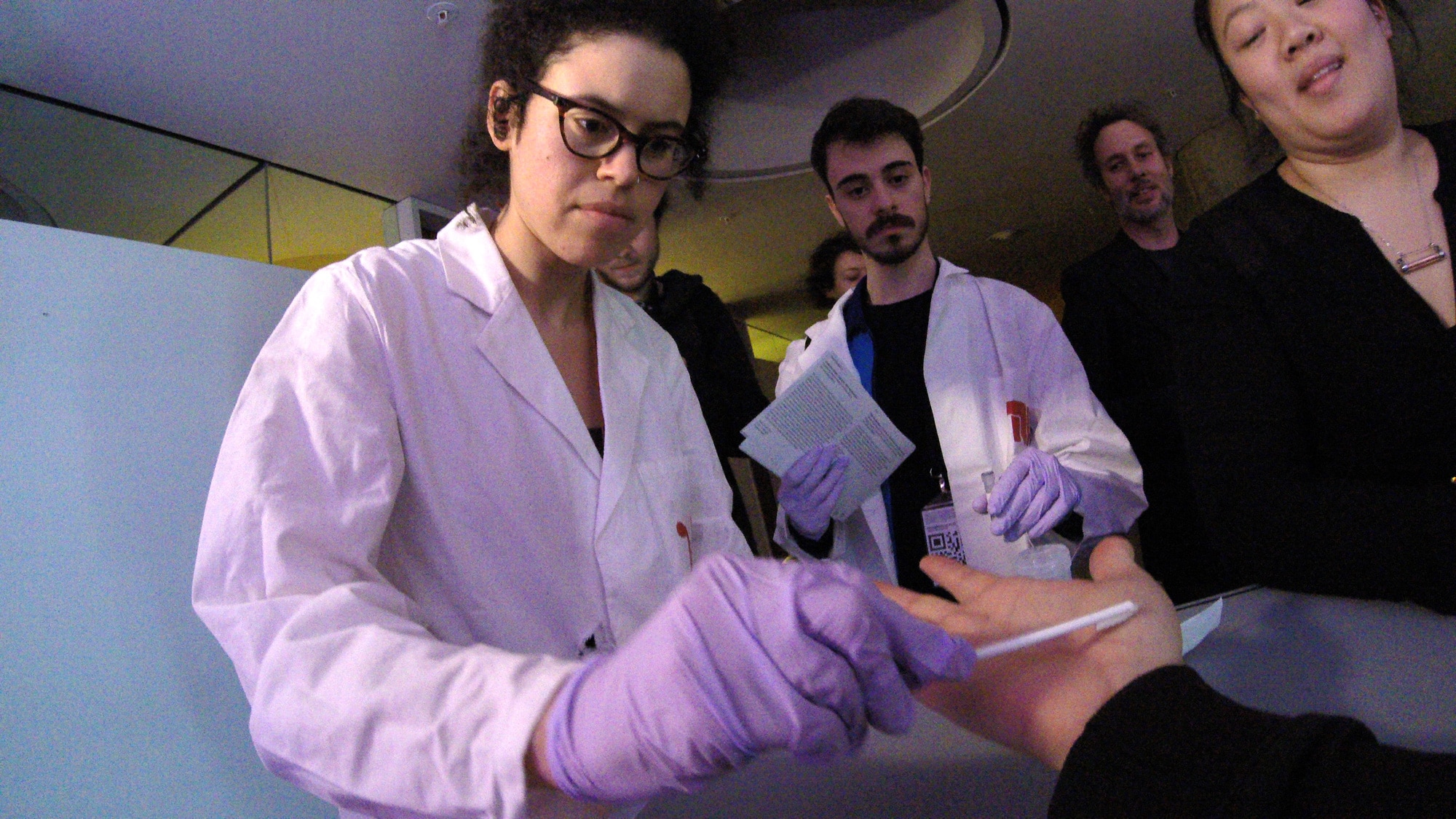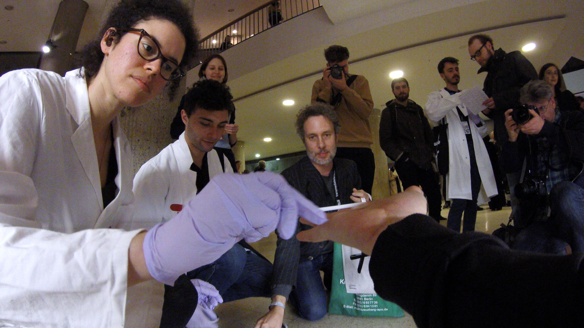 During this performative experiment Lapointe will shake hands with people, gradually changing the invisible microbial community in the palm of his hand. The DNA of this microbiome, whose samples will be taken from his skin during the performance, will then be analysed to reveal how our contact with others shapes the microbes between us, how it changes who we are. The performance raises awareness through physical and social engagement, through acts of participation and exchange on social, individual and microbial levels. The handshake is a basic and ancient act of networking, forms the beginning of a social, scientific and artistic collaboration between the performer and the public. The results will form part of the exhibition The Other Selves. On the Phenomenon of the Microbiome opening later that month at Art Laboratory Berlin.