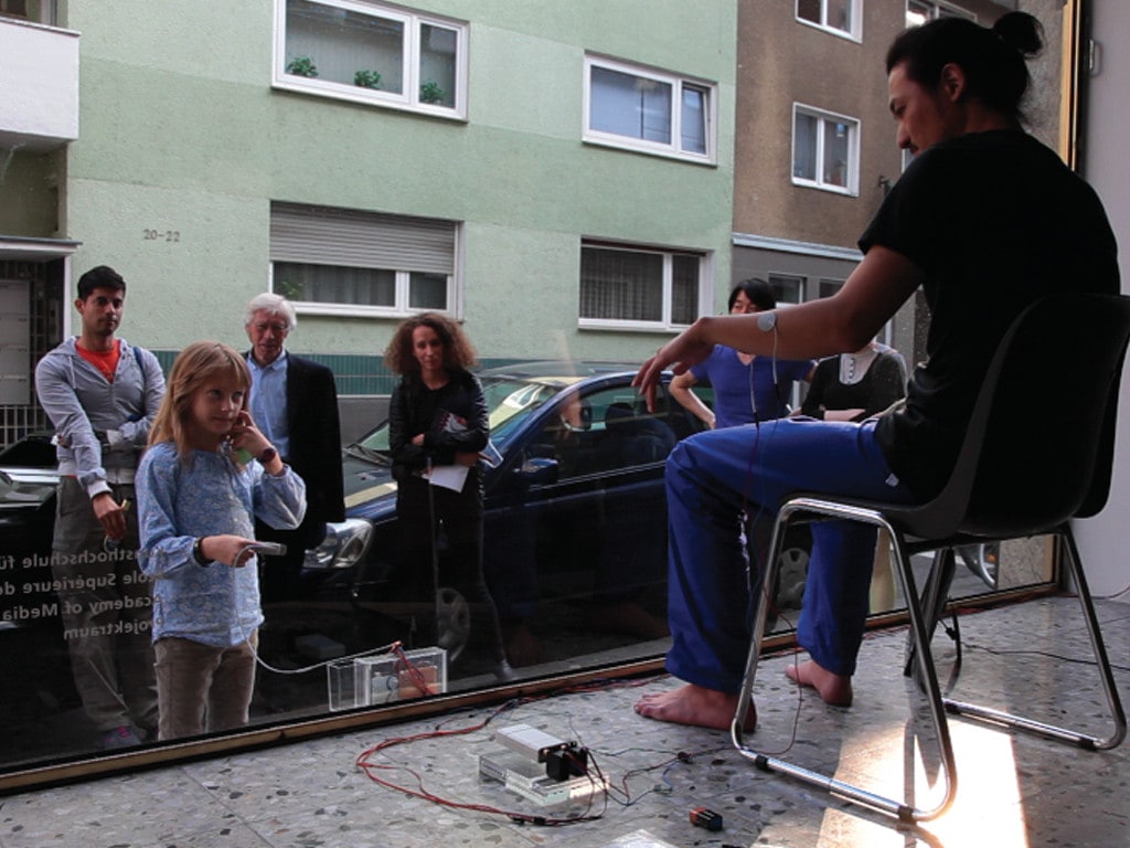 HyungJun Park’s solo exhibition Artificial Consciousness. Exposing the Invisible: Data, Rendering and Code brings together three artworks, created in the last fifteen years. Park’s artistic exploration focuses on the relationship between machine and humans as well as humans and nonhuman beings. He connects and exposes nonhuman sensorial experiences through technological tools for human body experiences that mimic other perceptions.