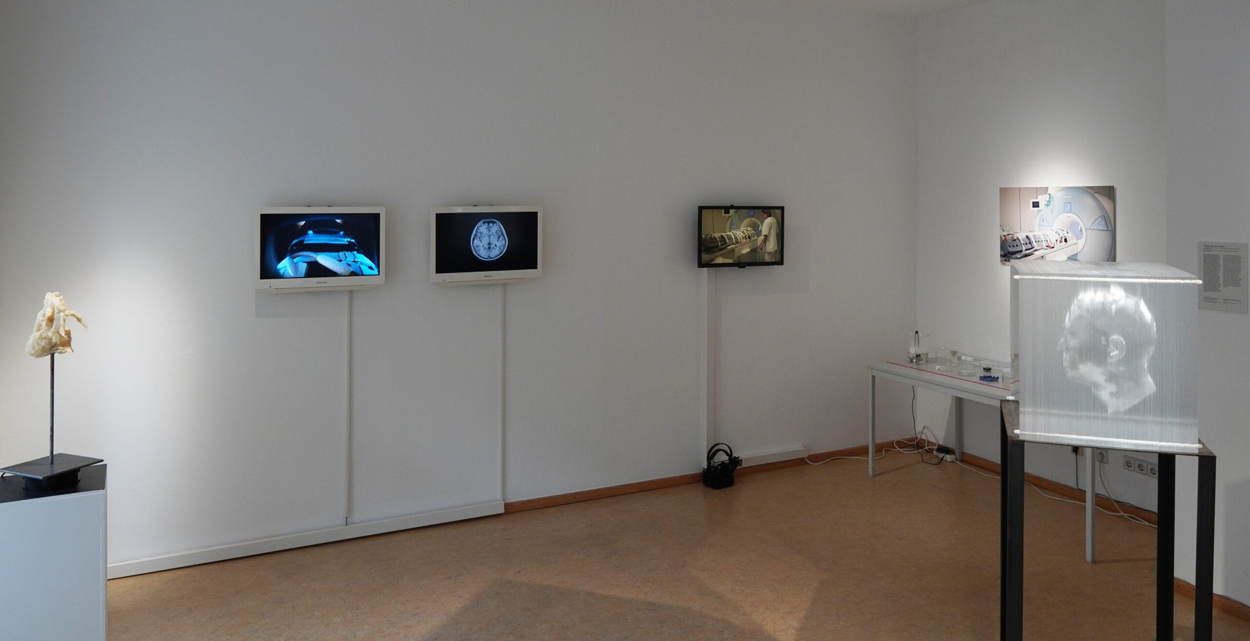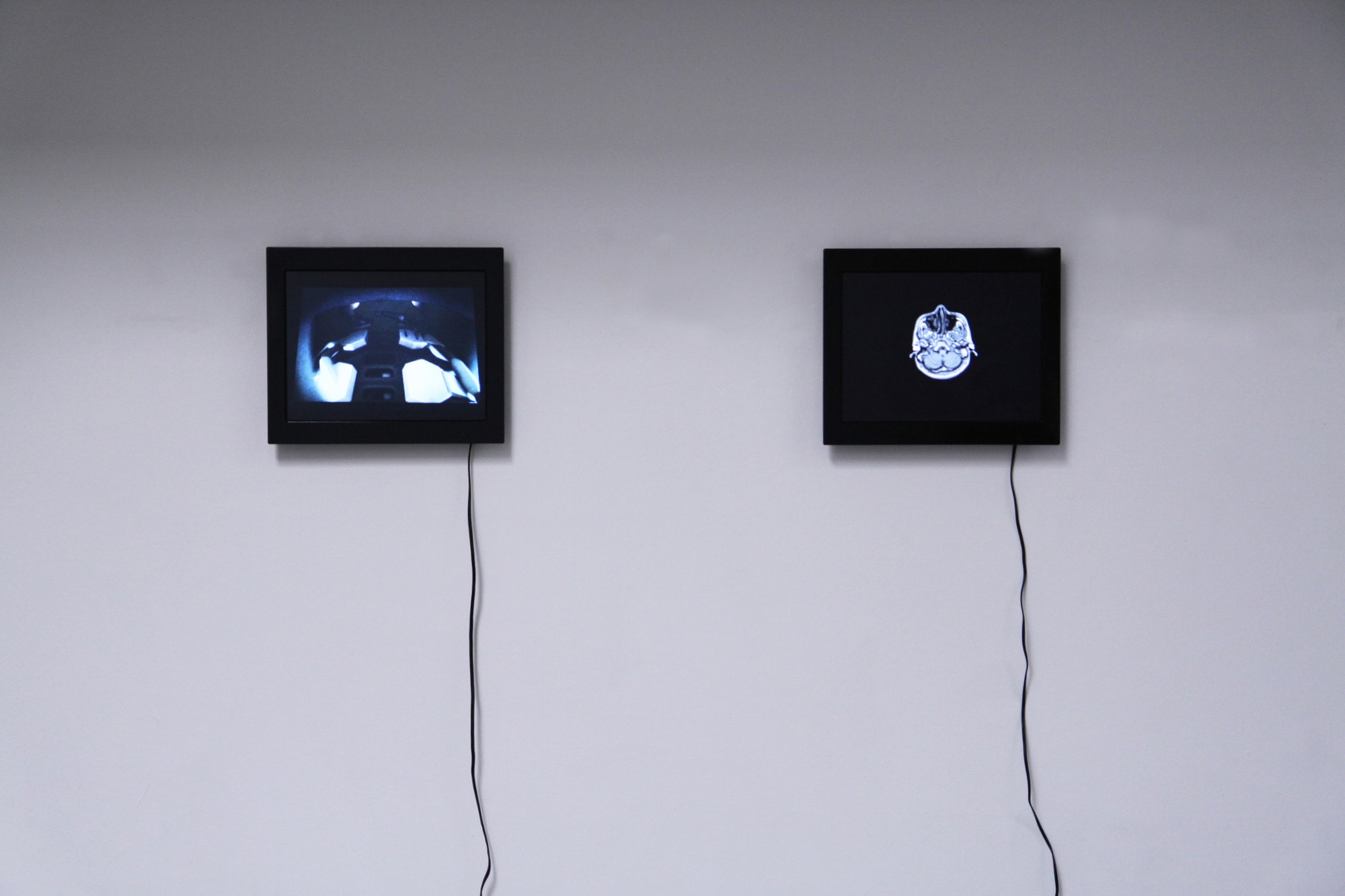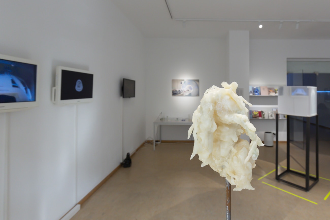 HyungJun Park: I am an Artefact, 2012, mixed media installation, MRI scan, two-channel video, beeswax, acrylic panel, Aerogel, ultrasonic humidifier