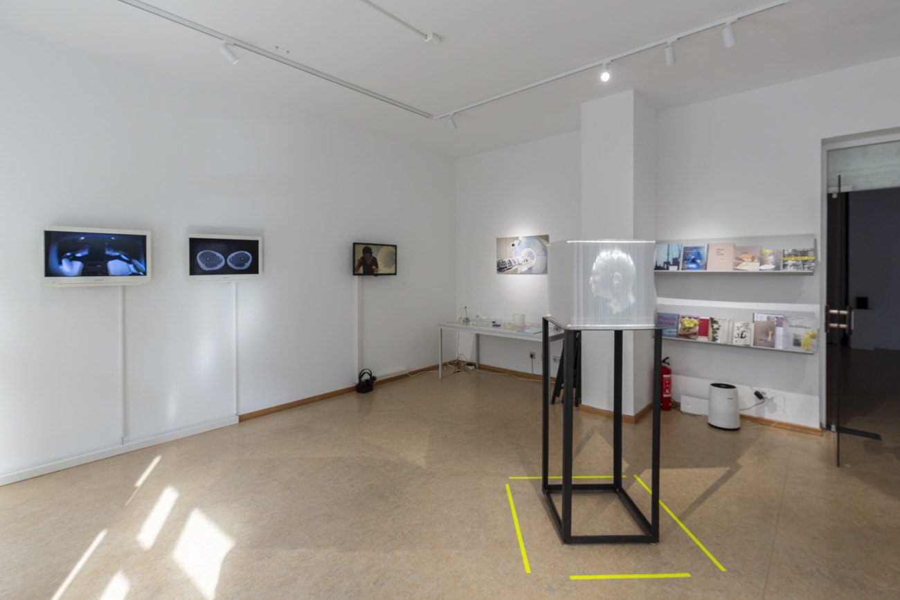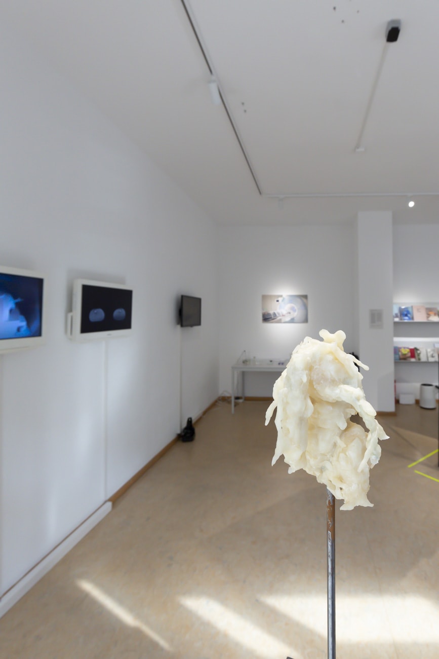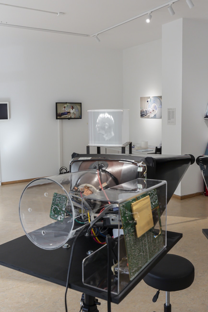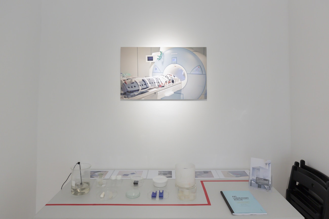 HyungJun Park: I am an Artefact, 2012, mixed media installation, MRI scan, two-channel video, beeswax, acrylic panel, Aerogel, ultrasonic humidifier