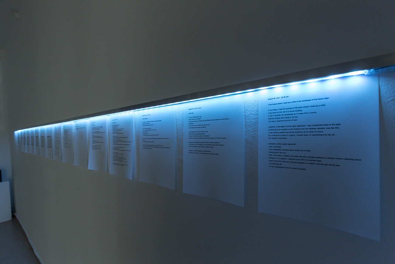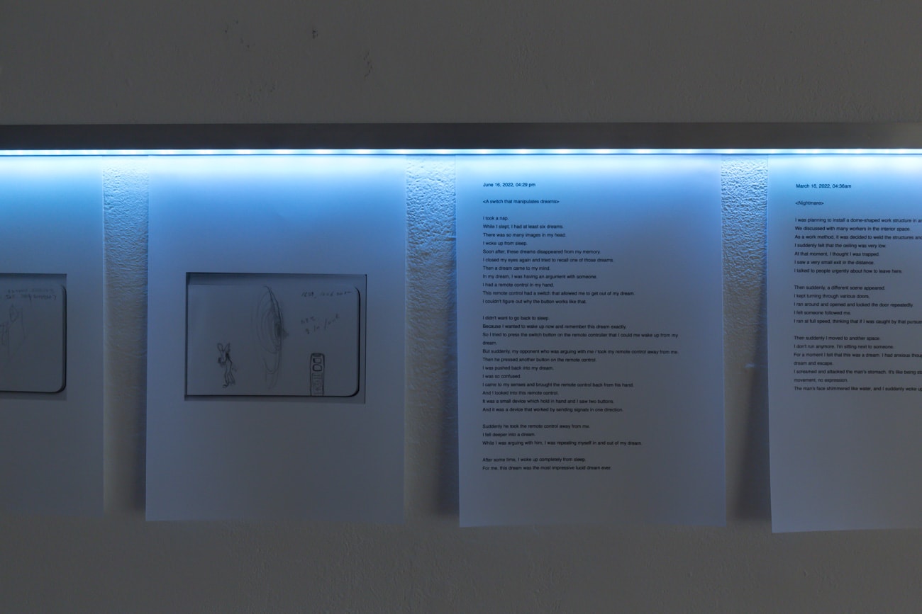 Somniloquy is Park’s ongoing research and his Ph.D. project, focusing on human and machine dreaming. Park has been keeping dream diaries to explore human and machine consciousness. Within the hype of AI tools and their accessibility, machine learning tools have been used more often in the new media art scene in recent years. AI tools have been criticised as heavily biased – white, Eurocentric, homophobic and misogynist through the content it has learned from its users. In contrast, in his artistic research, Park delves into machine learning from a subjective point of view and creates a unique dataset based on the dreams and images he has collected over the years. Based on his dreams, the AI tool creates (or dreams) new, humorous and absurd narratives based on the text and image that has been fed by the artist.