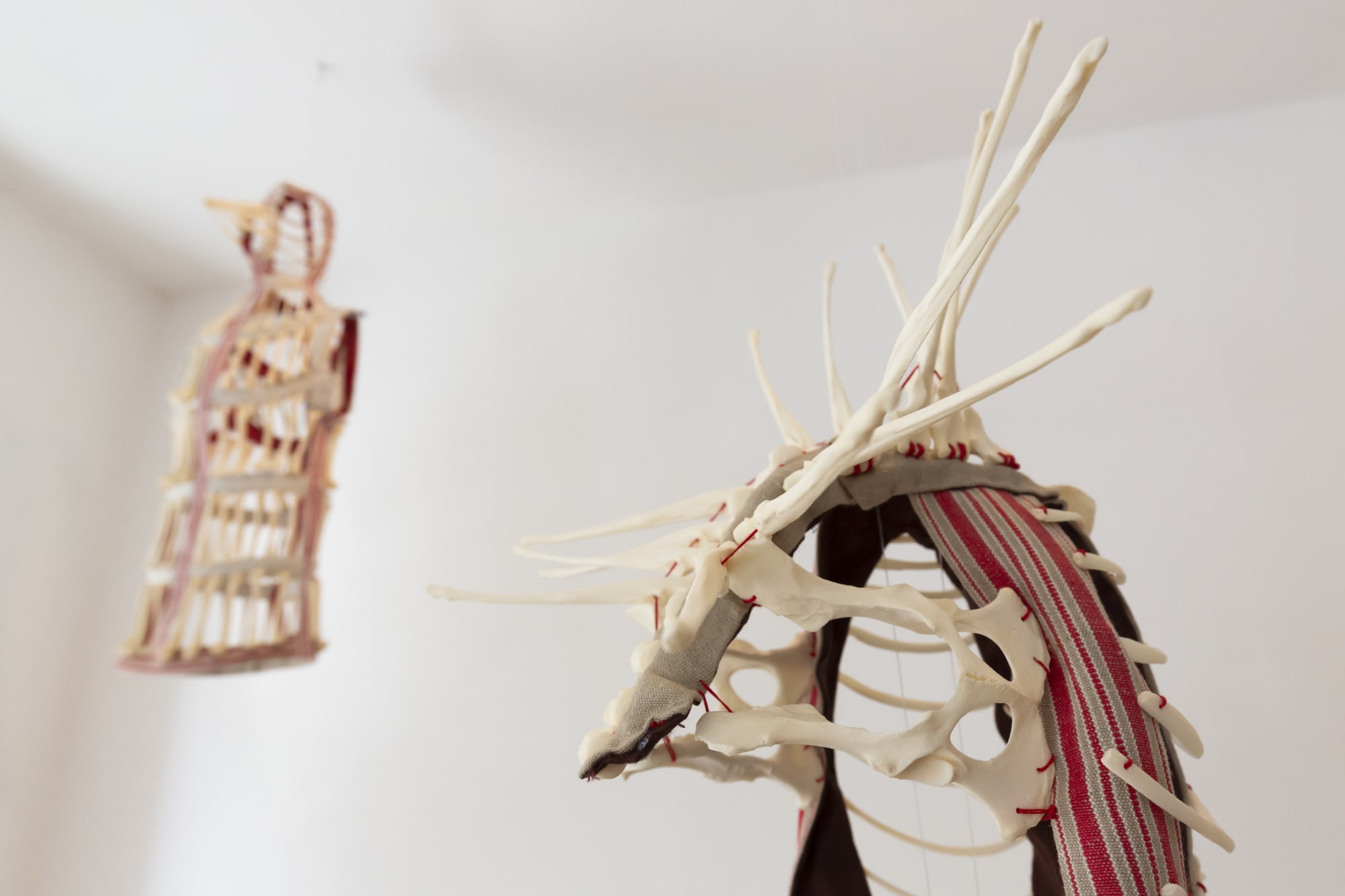 Käthe Wenzel has created interfaces between the biological and the machine in her project Bone Bots. These hybrid electronic animals, robots made from animal bones, blur traditional categories of “technology” and “nature” as they are based on experiments from synthetic biology and represent semi-living machines. Wenzel’s Bone Costumes thematise the mass consumption of living beings and the daily killing of animal bodies and the standardized forms into which we try to squeeze our own bodies. The works emerged from research into historical corset techniques and in connection with modern fashion technologies; they have developed into exoskeletons: half organic and half mechanical apocalyptic outfits.