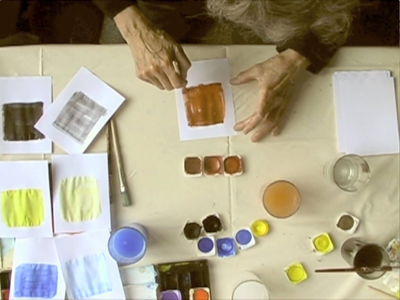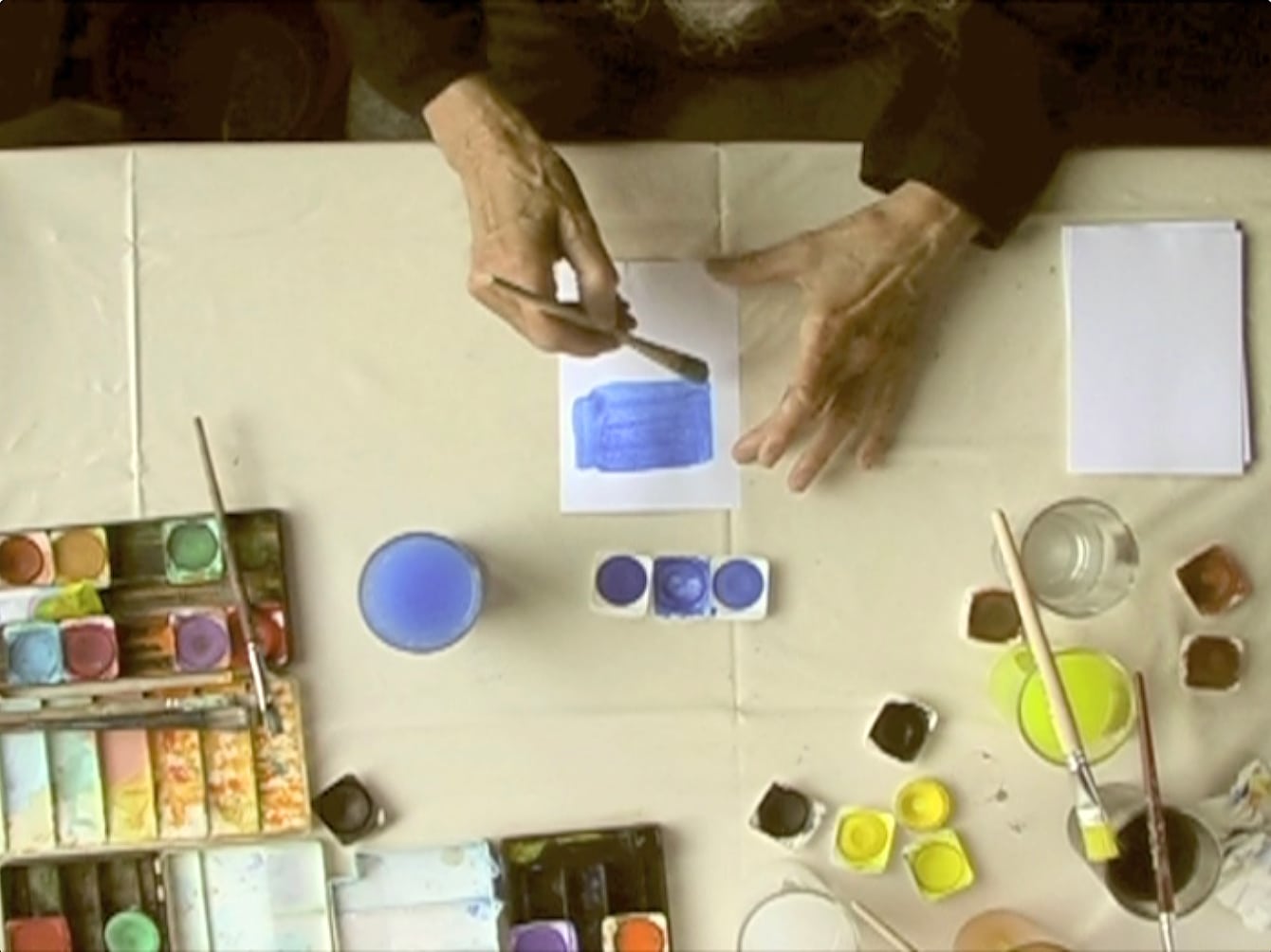 The work of the Berlin typographer and artist Annette Stahmer revolves around language, the relationship between voice and writing, the act of writing, palimpsests and synaesthesia. The two videos in the exhibition – A ist blau and Synästhetische Bilder I – IV – show the artist’s mother, a synaesthete who connects vowels with certain colors. The focus is on language that, following this internal logic, serves not only as a description of this phenomena, but becomes in itself material, assuming color and consistency. Therefore it evokes within the listener poetic, almost surreal images.